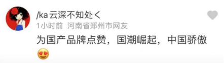 “为国货品牌点赞,国潮崛起,中国骄傲。”