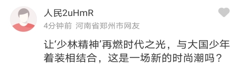“让‘少林精神’再燃时代之光,与大国少年着装相结合,这是一场新的时尚潮吗?”