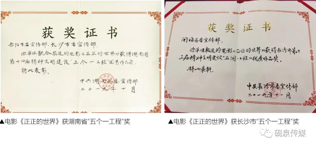 大会表彰长沙市第十三届精神文明建设“五个一工程”组织工作先进单位和获奖单位,共授予市文化旅游广电局等7家单位“组织工作奖”,砚泉文化出品的关爱留守儿童电影《正正的世界》等共34部“优秀作品奖”。同时,砚泉文化正在投拍的关爱老人院线电影《硬核老爸》也列入长沙市精品创作重点项目!