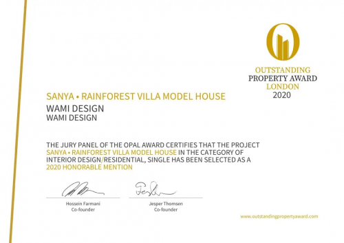 WΛMI设计「海南雨沐香庭别墅样板间」斩获2020 OPAL伦敦杰出地产大奖