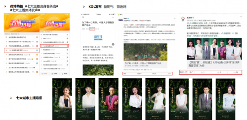 以7大城市主播的单图海报+短视频的形式进行朋友圈转发分享;根据对市场销售量排名的调研,对太原,西安,济南三大城市进行了微博热搜,同时配合微博大V文章直发、7大城市主播微博海报直发、微信大号文章发送的形式进行宣传,最终达成7740.8万+的阅读量。