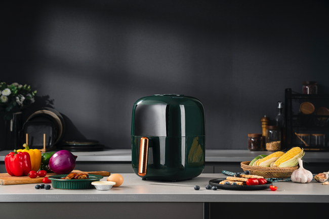 西屋空气炸锅是一款有颜有料的空气炸锅,炸锅体积小巧,光泽度高,深绿色机身与金色手柄的完美搭配,凸显其高端气质。西屋空气炸锅采用分体式设计,握住手柄向外拉开,即可放入食材进行烹饪,简单方便。