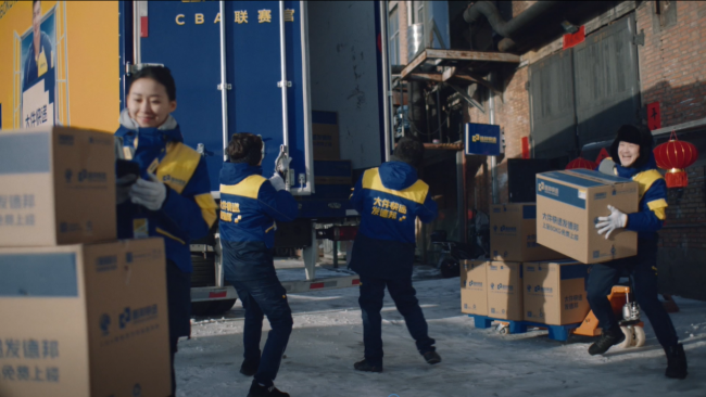 “开门”作为主视觉元素在片中多次出现。无论是曙光中慢慢开启的快递网点卷帘门、运输过程中贴有喜庆福字的厢货门,还是用户为奔波的快递员们打开的家门……在场景交替的画面里,用户和品牌之间的情感对话贯穿始终。每一次充满诚挚的送达,都让人在屏幕前共鸣一份情感收获。
